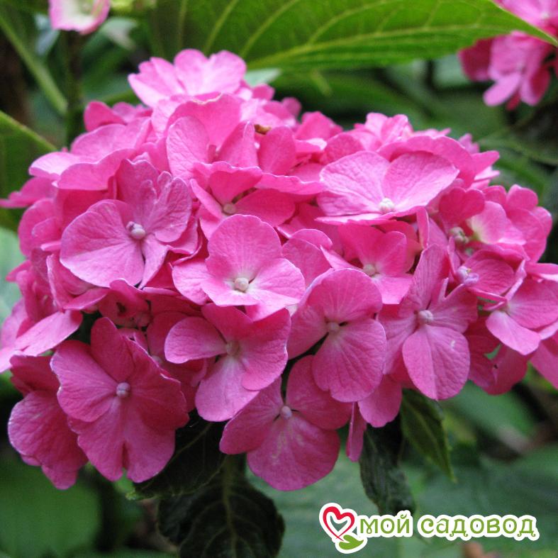 Гортензия крупнолистная Мини Хорнли –  небольшой куст, которые отлично смотрится в горшках, высота взрослого куста до 70 см., диаметр шаровидных соцветий 15 см. Выбирайте не ветреное место для гортензии, в зимний период, лучше перенести кустарник в более теплое помещение. Цвет лепестков цветоноса зависит от почвы, цвет может меняться от нежно-розового до насыщенного красно-розового.    Рекомендации к уходу: Гортензия цветет на прошлогодних побегах, поэтому обрезка не рекомендуется; под зиму срезают соцветия, весной вырезают только погибшие или очень старые ветви.